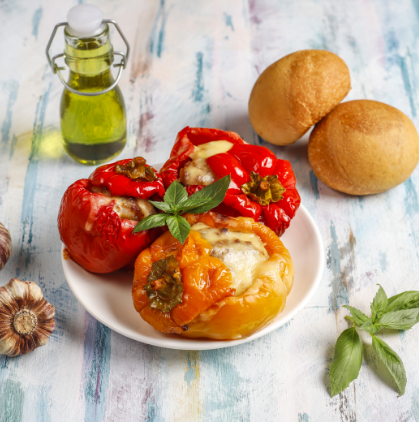Stacked Tomato, Summer Vegetable,and Grilled Bread Salad