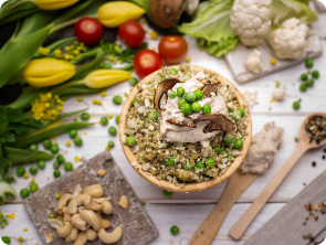 Lentil salad with fried cheese